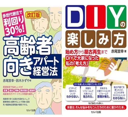 ![]() | 赤尾宣幸 高齢者向きアパートの会 主宰者 DIYを楽しむ会 主宰者 健美家コラムニスト 自分で住もうと思って買った区分所有を賃貸し大家デビューしたのが平成3年。その後、競売で区分所有を数室買ってDIYでリフォームしたうえで賃貸していました。 高齢者も暮らしやすい「高齢者向きアパート」のスキームを考えアパート2棟を購入。高齢者の受け入れを増やしていきたいと思い、コラムやセミナーで普及活動をしています。 自称DIYのプロで吉原さんとDIYの本も書いています。DIY体験会を通じて、オーナーや仲間たちといろんな部屋をリフォームしています。 |